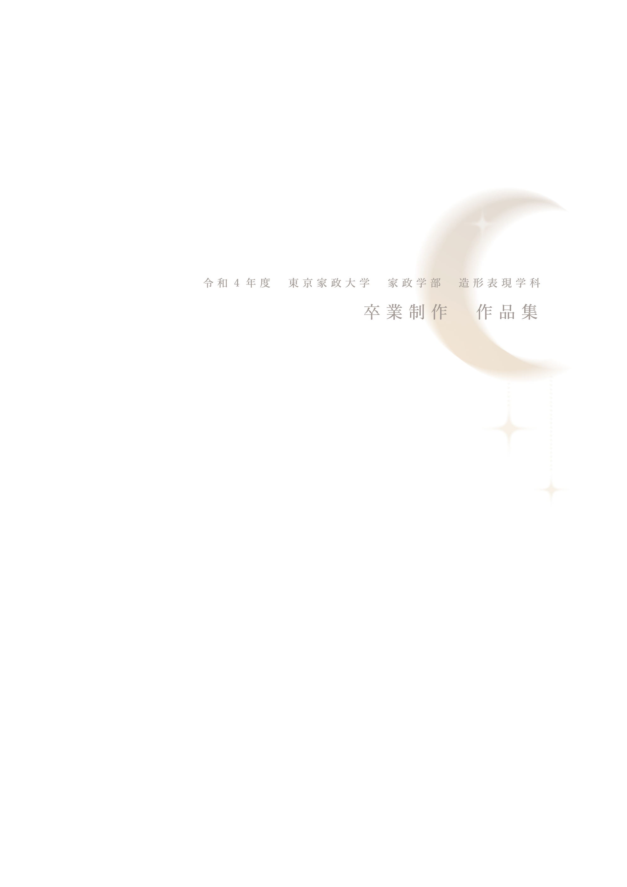 ・表紙に使用した雲のデザインを中扉にも使用しています。これにより作品集全体に統一感を持たせています。しかし雲のデザインだけでは重たい印象だったため、中表紙に合わせて星のあしらいを加えました。あくまで中扉なので、各作品の邪魔をしないようシンプルかつ控えめなデザインを心がけました。 -