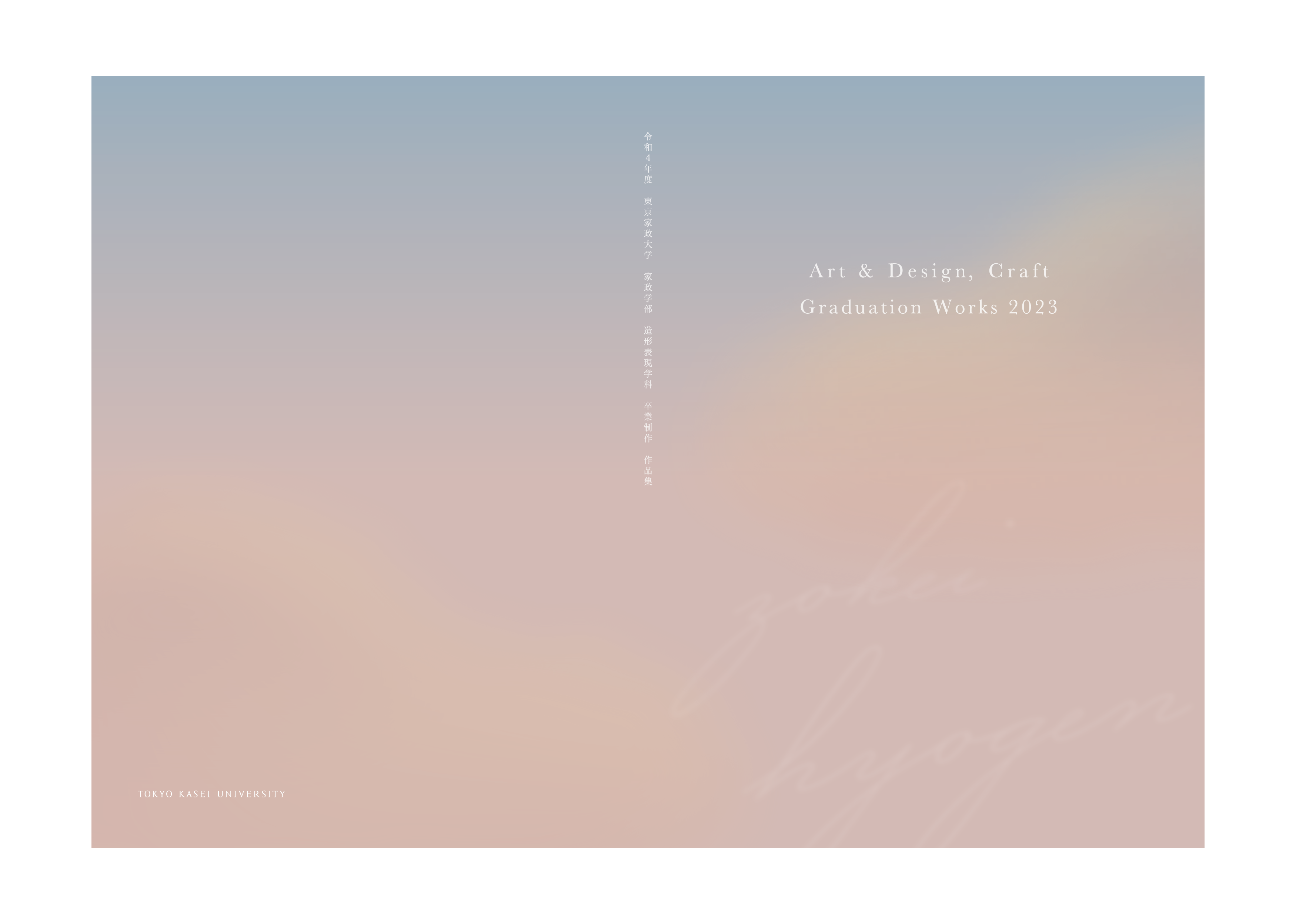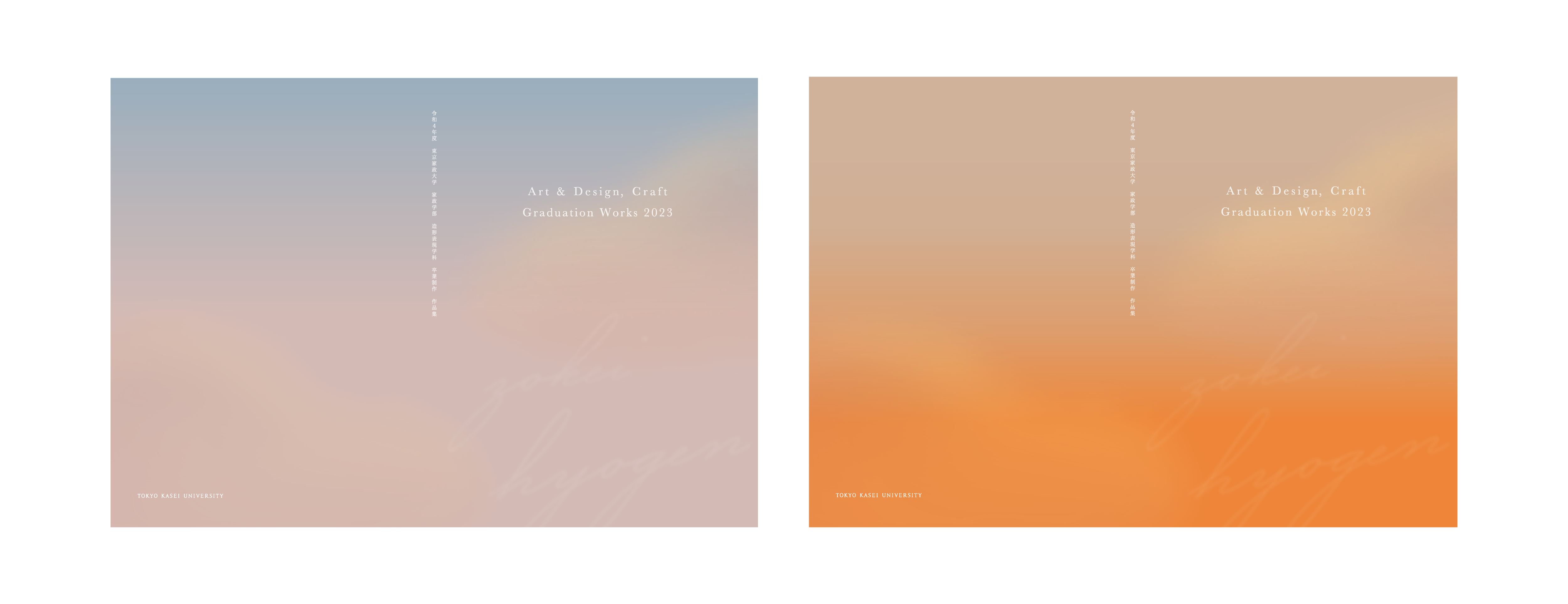 卒業制作をまとめた作品集の表紙デザインを任せていただきました。表紙・中表紙・索引・中扉をデザインしました。黄昏時の空をイメージしたデザインで、卒業制作という集大成としての品格を表現しました。シンプルなデザインですが、色や配置にこだわっています。最終的に決定した黄昏時の配色の他、2パターン制作しました。